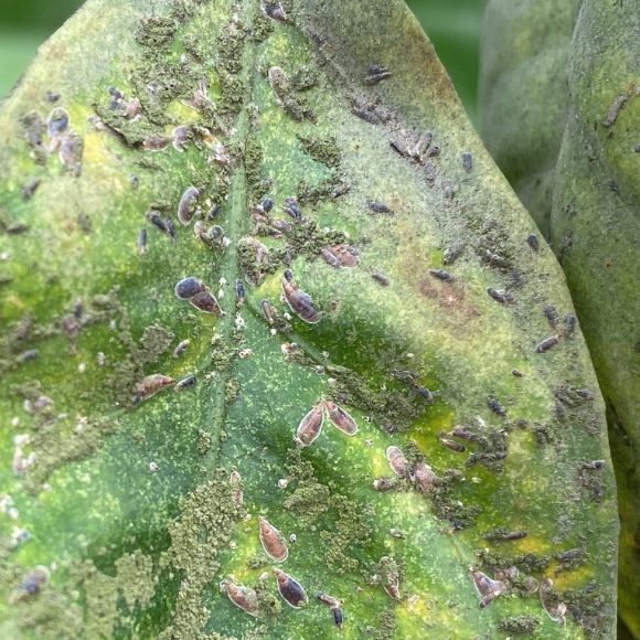 Se desarrollan en el envés de las hojas y en los racimos florales. Le favorece cuando la vegetación es densa, exceso de fertilización nitrogenada y la poca ventilación, se multiplica en el interior del árbol. Se debe monitorear todo el año, incrementando la frecuencia en primavera y verano.